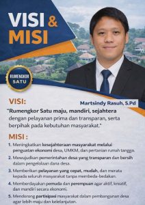 “Rumengkor Satu maju, mandiri, sejahtera dengan pelayanan prima dan transparan, serta berpihak pada kebutuhan masyarakat,” ujarnya.